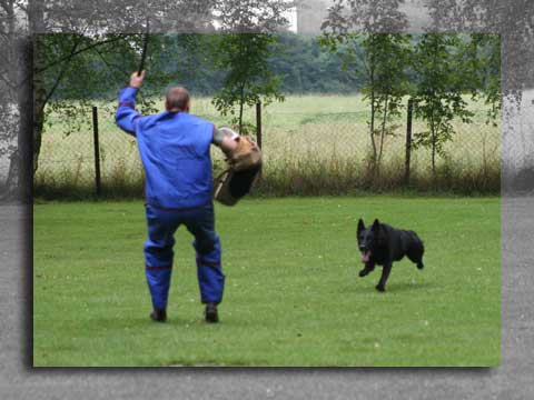| Freude an der Arbeit und Exaktheit bei der Ausführung der Übungseinheiten sind Qualitätsmerkmale einer guten, mit Sachverstand durchgeführten Ausbildung eines Sportgebrauchshundes in der Disziplin VPG. |   | ||