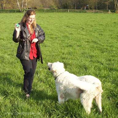 Und dies ist mein Frauchen Anette. Unterrudelführerin. Sie darf mit mir auf dem Hundeplatz arbeiten. |