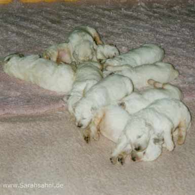 Nun findet doch mal raus, welches Welpchen ist bin. Gar nicht so einfach was ? |